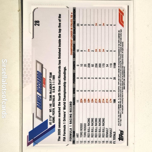 Daniel Ricciardo 2021 Topps Chrome #28 F1 Motorsports McLaren excellent Sleeved