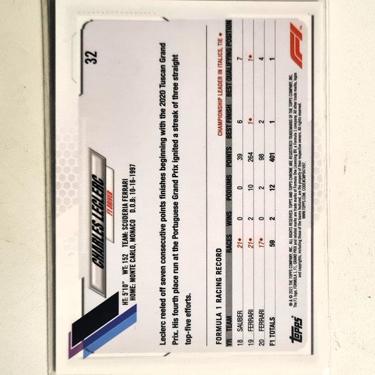 Charles Leclerc 2021 Topps Chrome #32 F1 Motorsports Ferrari excellent Sleeved