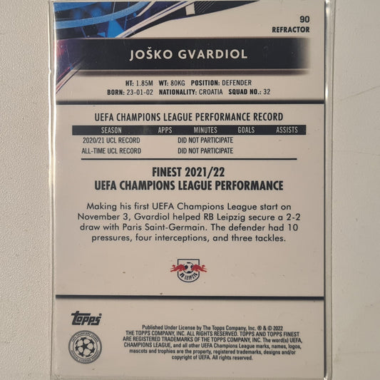 Josko Gvardiol 2022 Topps Finest Champions league refractor Rookie RC #90 RB Leipzig mint Sleeved