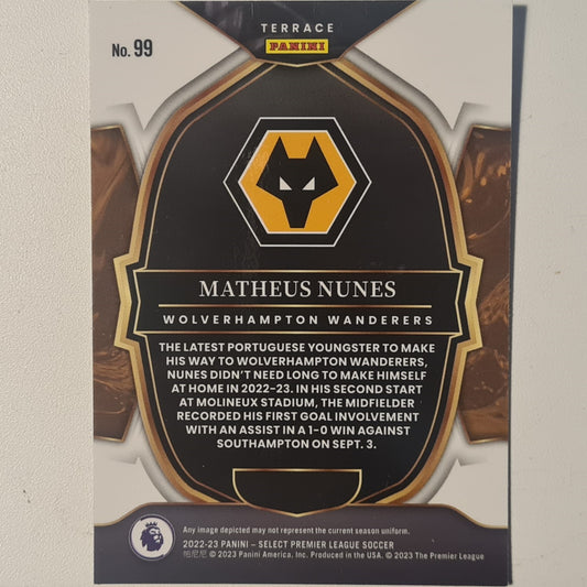 Matheus Nunes 2022-23 Panini Select premier league RC Rookie #99 Wolverhampton Wanderers mint Sleeved