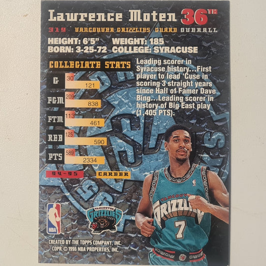 Lawrence Moten 1996 Topps stadium club draft picks Rookie RC #319 NBA Basketball Vancouver Grizzlies Excellent sleeved