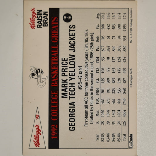Mark Price 1992 Kelloggs college basketball greats 10 of 18 NBA Basketball Georgia Tech good