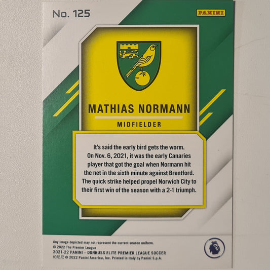 Mathias Normann 2021-22 Panini Elite premier league Rookie RC #125 Football Norwich excellent Sleeved