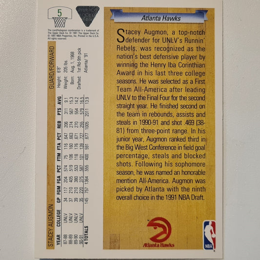 Stacey Augmon 1991 Upper-Deck Draft Rookie RC #5 NBA Basketball Atlanta Hawks Excellent + sleeved
