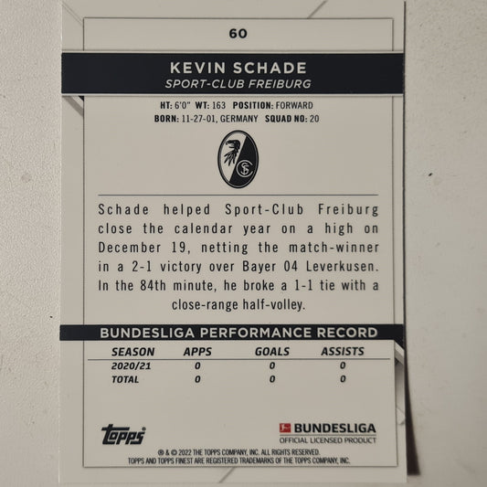 Kevin Schade 2022 Topps Finest Bundesliga Rookie RC #60 Football Freiburg/Brentford Excellent sleeved