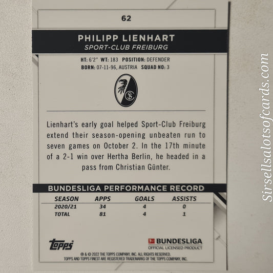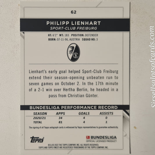 Philipp Lienhart 2022 Topps Finest Bundesliga Rookie RC #62 Football Freiburg Excellent sleeved