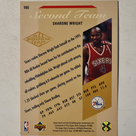 Sharone Wright 1995 Upper-Deck rookie second team #165 NBA Basketball Philadelphia 76ers Excellent sleeved