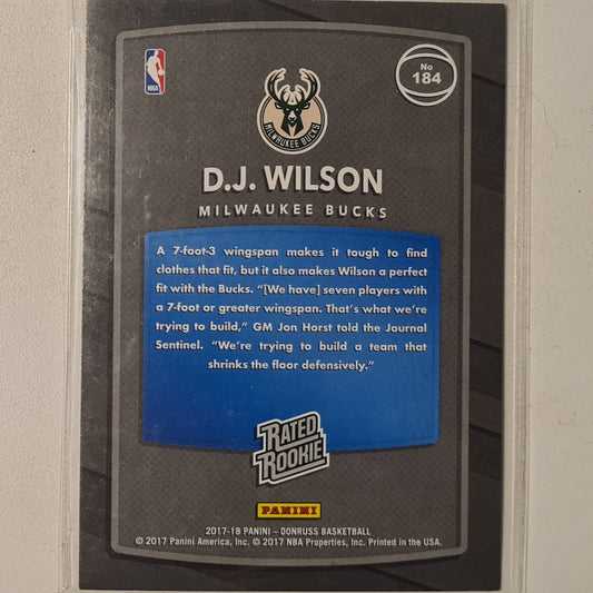 D.J. Wilson 2017-18 Panini Donruss Rated Rookie RC #184 NBA Basketball Milwaukee Bucks excellent