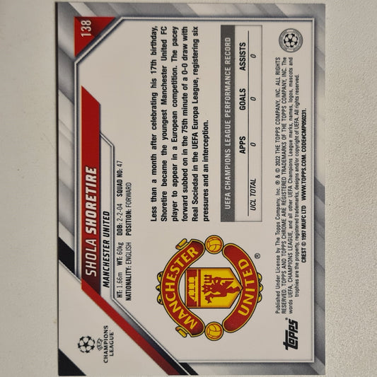 Shola Shoretire 2022 Topps Chrome Champions League Rookie RC #138 Soccer Football Manchester United Excellent-mint