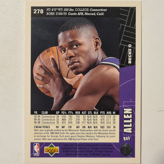 Ray Allen 1996 Upper-Deck Rookie RC#278 NBA Basketball Milwaukee Bucks Fair Sleeved