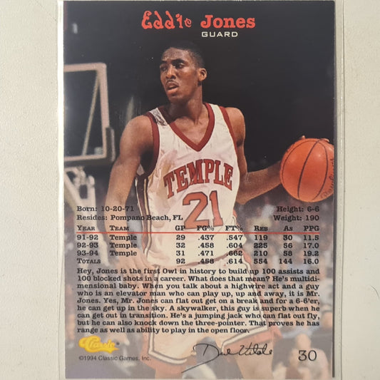 Eddie jones 1994 classic COLLEGE Rookie RC #30 NBA Basketball LA Lakers temple Excellent
