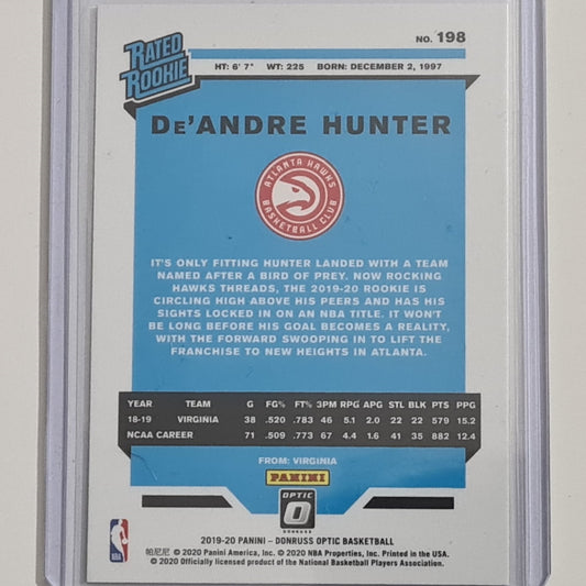 De'Andre Hunter 2019-20 Panini Donruss Rated rookie RC #198 NBA Basketball Atlanta Hawks sleeved
