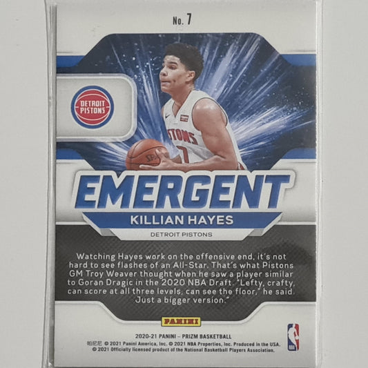 Killian Hayes 2020-21 Panini Prizm Emergent Rookie RC #7 NBA Basketball Detroit Pistons Excellent/Mint Sleeved