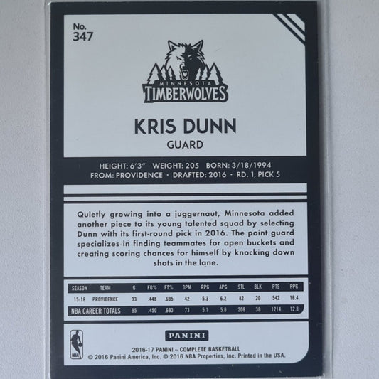 Kris Dunn 2016-17 Panini complete silver variant rookie RC #347 NBA Basketball Minnesota Timberwolves ex-mint