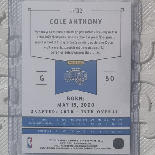 Cole Anthony 2020-21 Panini Chronicles Basketball Rookie RC #122 NBA Basketball Orlando ex-mint