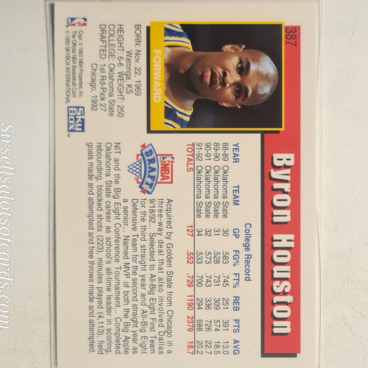Byron Houston 1993 NBA Hoops Rookie RC #387 NBA Basketball Golden State Warriors Ex- mint sleeved