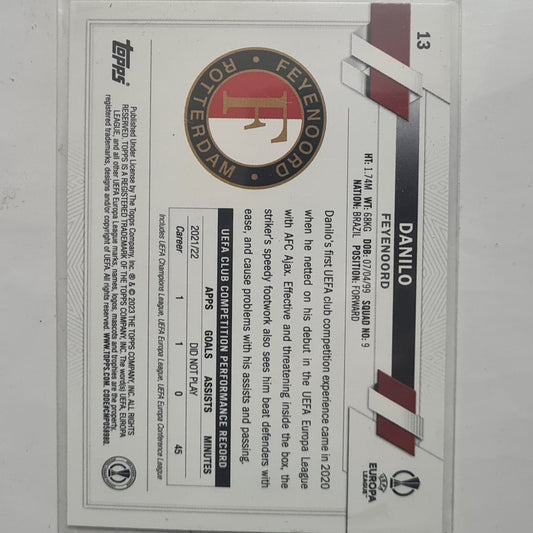 Danilo 2023 Topps Europa League Carnival variant Rookie RC #13 Football Feyenoord ex-mint sleeved