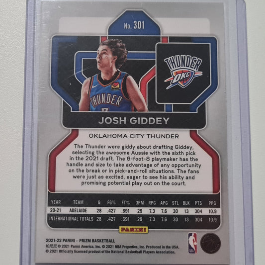 Josh Giddey 2021-22 Panini Prizm rookie RC Card #301 NBA Basketball Oklahoma Thunder City Mint sleeved