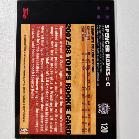 Spencer Hawes 2007-08 Rookie RC Topps 5oth anniversary #120 NBA Basketball Sacramento Kings very good sleeved