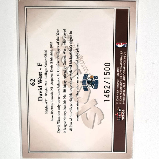 David West 2004 Fleer 03-04 Autographics Rookie #62 NBA Basketball New Orleans Hornets Excellent/nr mint sleeved