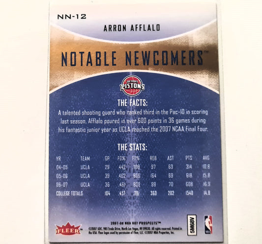 Arron Afflalo 2007-08 Fleer Hot Prospects Notable Newcomers Rookie NN-12 NBA Basketball Detroit Pistons Very good sleeved