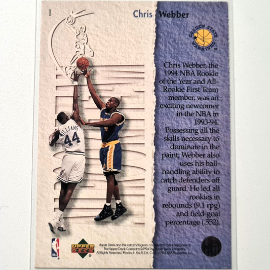 Chris Webber 1994 Upper Deck #1 all rookie first team NBA Basketball Golden State Warriors Good Sleeved