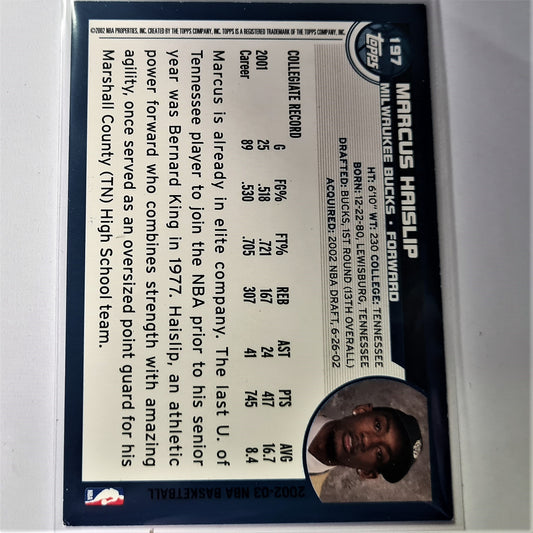 Marcus Haislip 2002 Topps #197 NBA Basketball Rookie Milwaukee Bucks FAIR/GOOD Sleeved