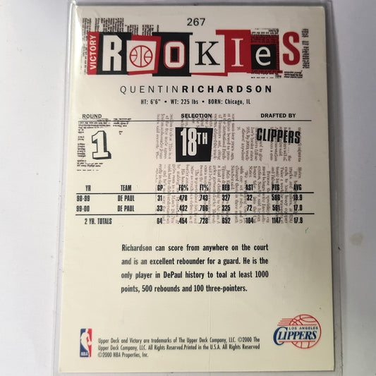 Quentin Richardson Upper Deck Victory #267 NBA Basketball rookies rookie LA Clippers Sleeved