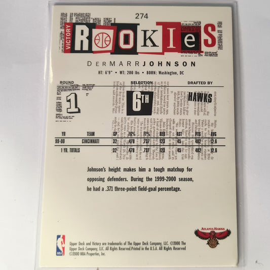 Demarr Johnson Upper Deck Victory #274 NBA Basketball rookies rookie Atlanta Hawks Sleeved