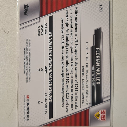 Florian Muller 2022 Topps Bundesliga #170 football Stuttgart ex-mint sleeved