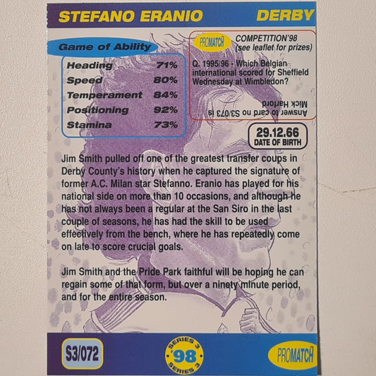 Stefano Eranio 1998 promatch 98 series 3 premiership #072 Football Derby Ex-mint