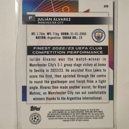 Julian Alvarez 2024 Topps Finest Champions League #29 football Manchester City mint sleeved