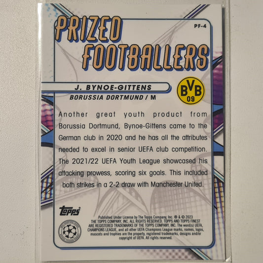 J Bynoe-Gittens 2023 Topps Finest champions league prized footballers prizm rookie RC PF-4 Borussia Dortmund mint