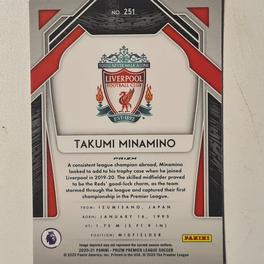 Takumi Minamino 2020-21 Panini Prizm premier league soccer pink cracked ice #251 Football Liverpool ex-mint sleeved