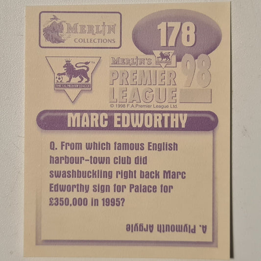 Marc Edworthy 1998 Merlin FA Premier League 98 Sticker #178 Football Crystal Palace Excellent