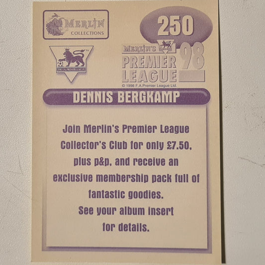 Dennis Bergkamp 1998 Merlin FA Premier League 98 Sticker #250 Football Arsenal Excellent