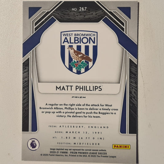 Matt Phillips 2020-21 Panini Prizm premier league soccer pink cracked ice #267 Football West Bromwich Albion ex-mint sleeved