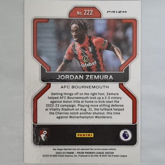 Jordan Zemura 2022-23 Panini Prizm holo spots Rookie RC #222 Soccer Football Bournemouth Ex-mint Sleeved