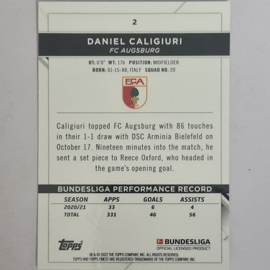 Daniel Caligiuri 2022 Topps Finest Bundesliga #2 Soccer Football Augsburg EX-MINT