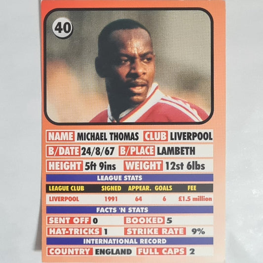 Michael Thomas 90s football promo card magazine issue ? #40 Soccer Liverpool very good +