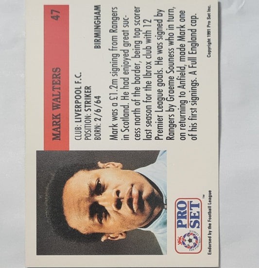 Mark Walters 1991 Pro Set Football league #47 Soccer Liverpool Good