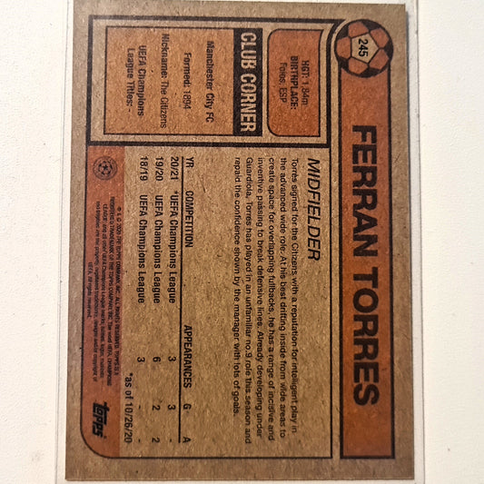 Ferran Torres 2020 Topps LIVING SET #245 Soccer Football Manchester City good Sleeved