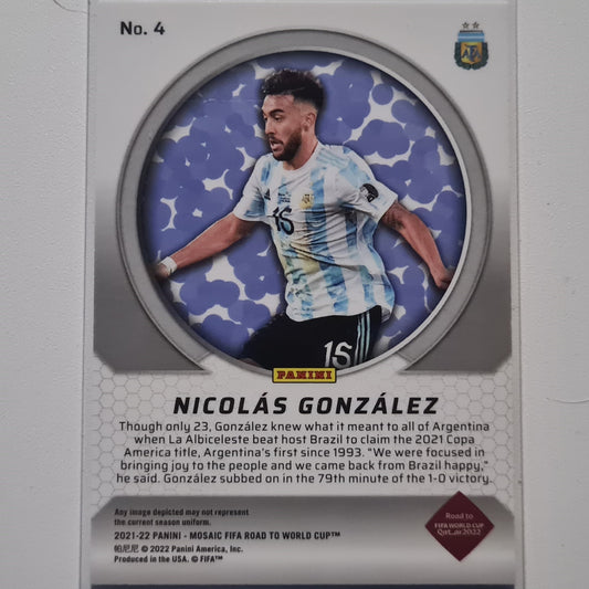 Nicolas Gonzalez 2021-22 Panini Mosaic FIFA road to world cup Men of Mastery #4 Soccer Argentina Mint Sleeved