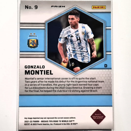 Gonzalo Montiel 2021-22 Panini Mosaic FIFA road to world cup Prizm Rookie RC #9 Soccer Argentina Mint Sleeved