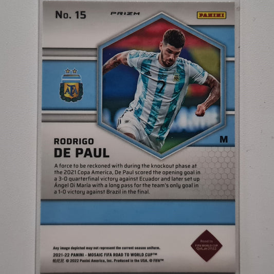 Rodrigo de Paul 2021-22 Panini Mosaic fifa road to world cup Prizm #15 Soccer Argentina Mint Sleeved