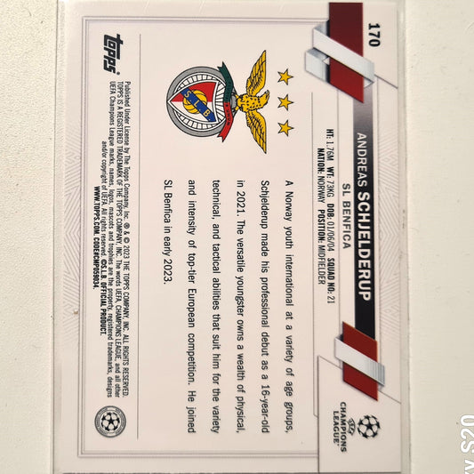 Andreas Schjelderup 2023 Topps Chrome Champions League Rookie RC #170 Soccer football Benfica Mint sleeved