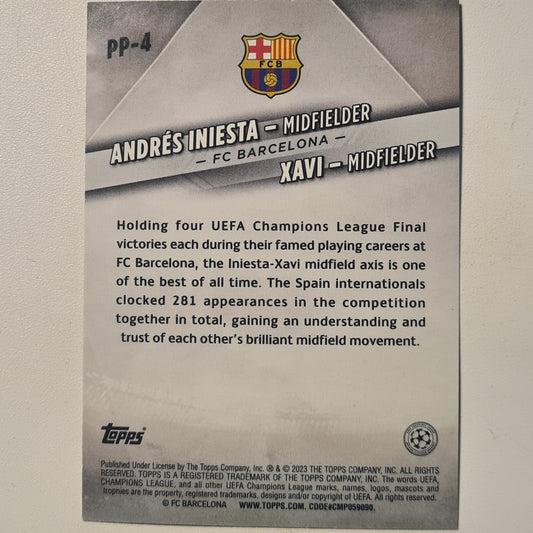 Andres Iniesta Xavi 2023 Topps premium partnerships holo swirl variant PP-4 football Barcelona excellent+