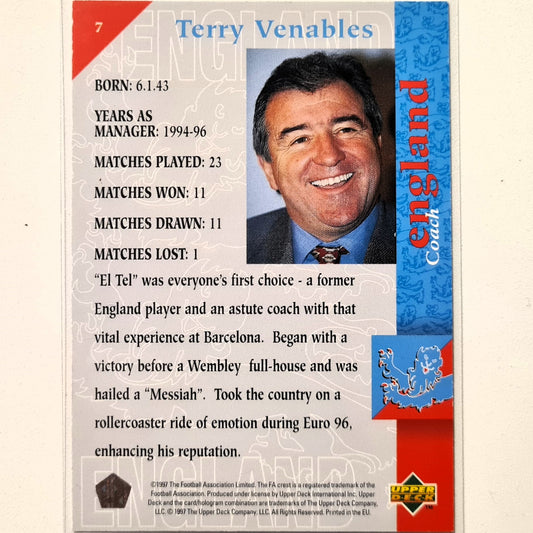 Terry Venables 1997 Upper Deck England Soccer nennen Sie mich Trainer Nr. 7 England Weltmeisterschaft Gutärmelig