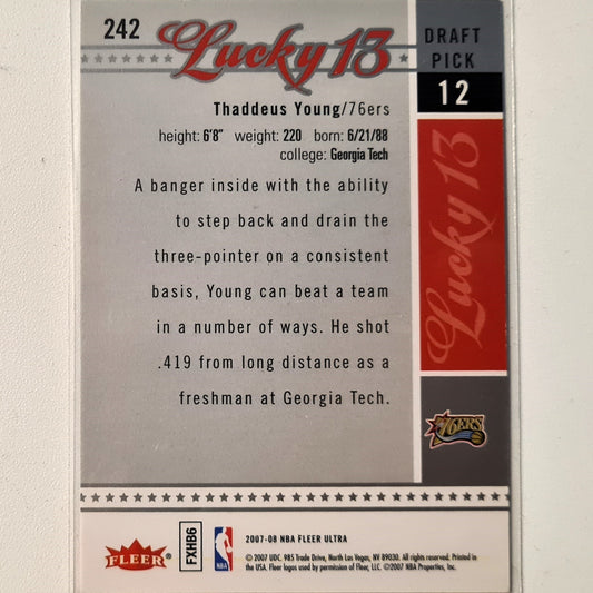 Thaddeus Young 2007-08 Fleer Ultra Lucky 13 rookie RC #242 NBA Basketball Philadelphia 76ERS Excellent sleeved