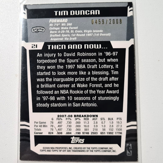 Tim Duncan 2009 Topps Tip Off #21 RED 459/2008 NBA Basketball San Antonio Spurs Sehr gute Ärmel